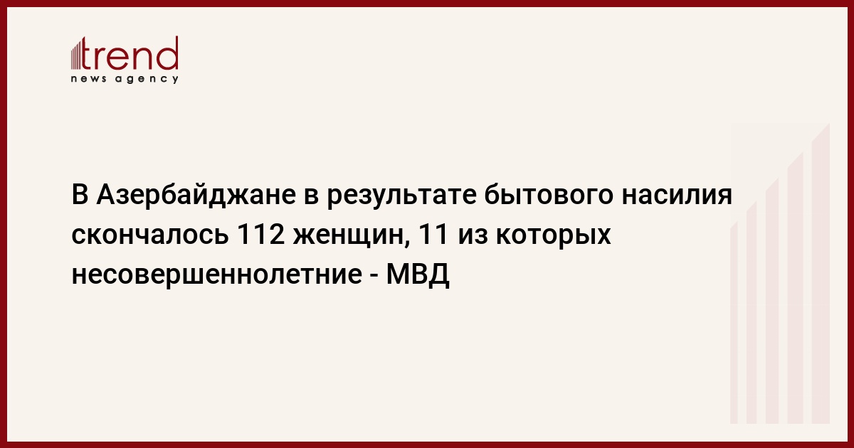 БАКУ /Trend/ - Согласно статистике последних пяти лет, в Азербайджане уменьшилась динамика преступлений, связанных с насилием против женщин.