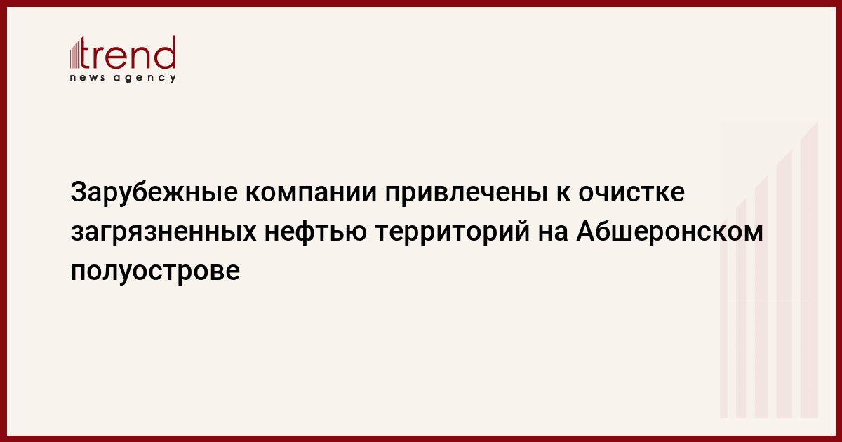 БАКУ /Trend/ - Министерство экологии и природных ресурсов Азербайджана привлекло квалифицированные зарубежные компании к очистке загрязненных нефтью территорий, сообщает в четверг Trend со ссылкой на министерство.