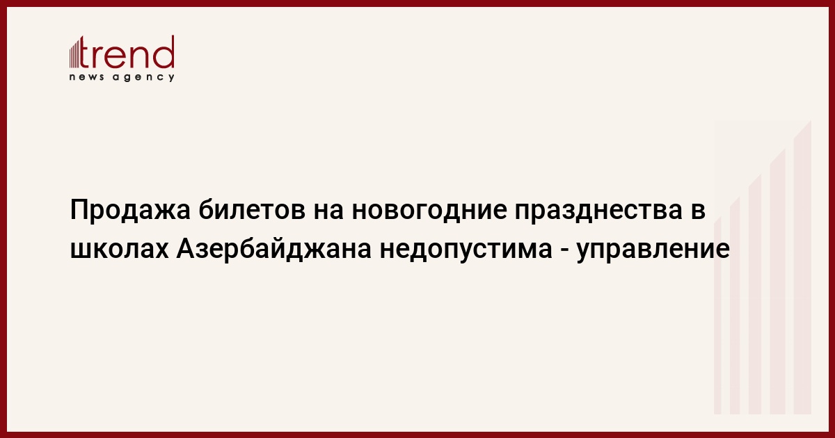 В общеобразовательных школах продажа билетов на проведение новогодних празднеств недопустима, сообщили в пятницу Trend в Управлении образования по города Баку.
