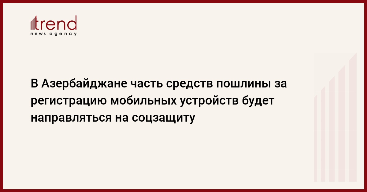 БАКУ /Trend/ - Определенная часть государственной пошлины, выплачиваемой за регистрацию мобильных устройств, будет направляться на усиление социальной защиты работников соответствующих государственных органов Азербайджана, сообщает в пятницу Trend.