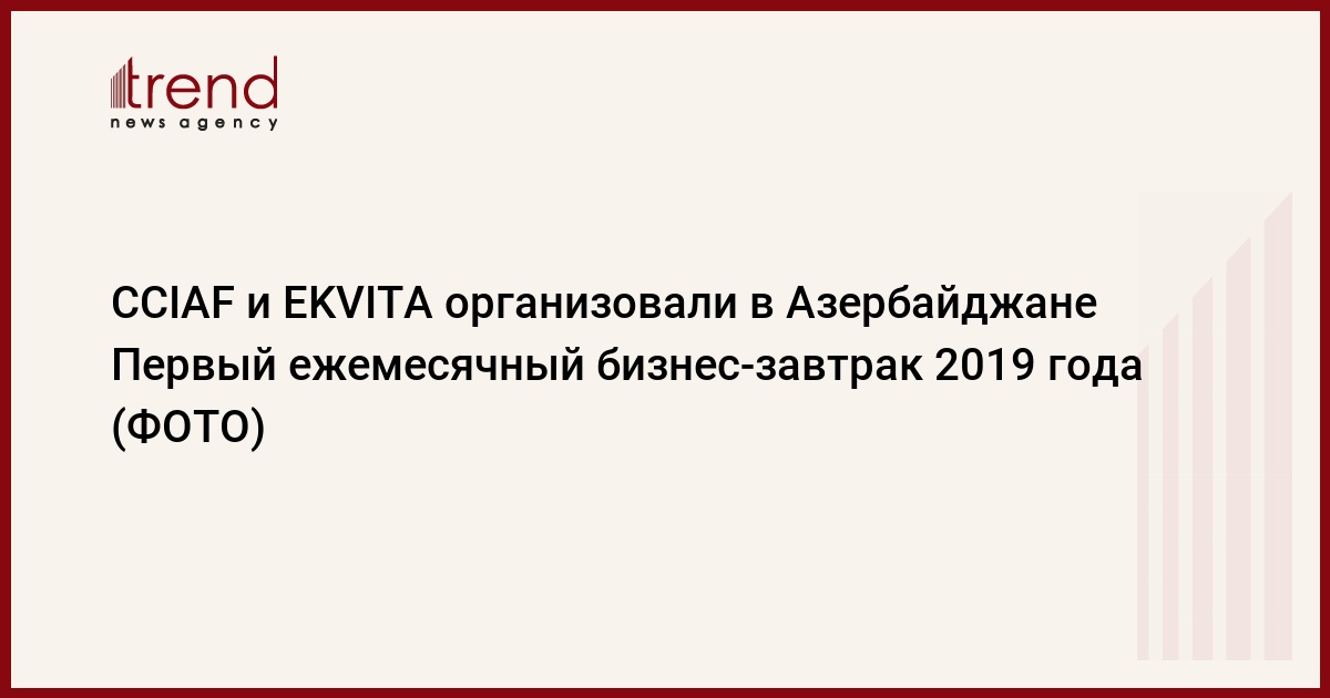 БАКУ /Trend/ - 24 января 2019 года CCIAF совместно с EKVITA организовали Первый ежемесячный бизнес-завтрак 2019 года, который состоялся в отеле JW Absheron Marriott и был посвящен корпоративной уголовной ответственности, сообщает в понедельник Trend со ссылкой на компанию.
