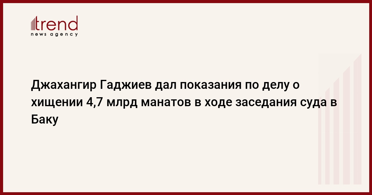БАКУ /Trend/ - В четверг в Бакинском суде по тяжким преступлениям продолжилось подготовительное заседание суда по уголовному делу экс-главы Международного банка Азербайджана Джахангира Гаджиева, его родственника Исмаила Идаят-заде, экс-депутата Дуньямина Халилова, Джамаля Гасанова, Сархана Расулова, Натига Иманова, Самира Гаджиева, Табриза Абдулгамидова и 16 других лиц, сообщает Trend.