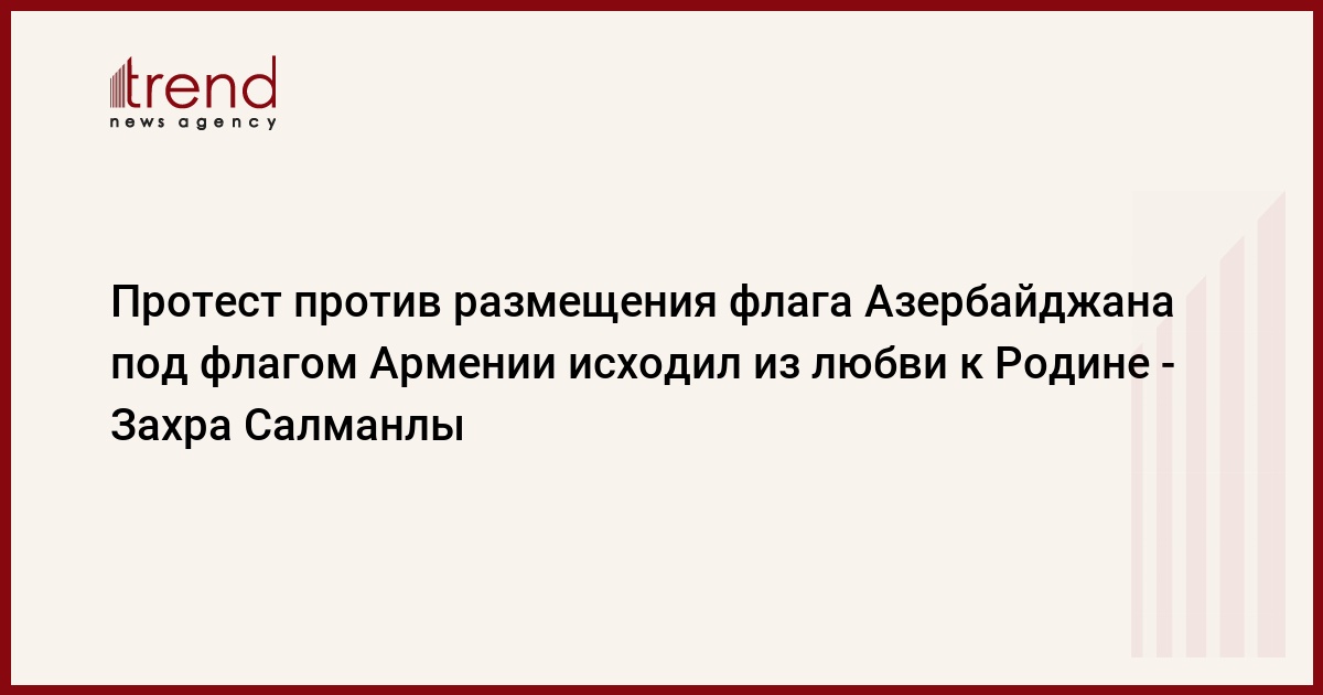 БАКУ /Trend/ - Протест против размещения флага Азербайджана под флагом Армении на международном соревновании по каратэ в Иране исходил из любви к своей Родине и флагу. Об этом в субботу сказала Trend учащаяся пятого класса полной средней школы номер 95 при Управлении образования по городу Баку Захра Салманлы.