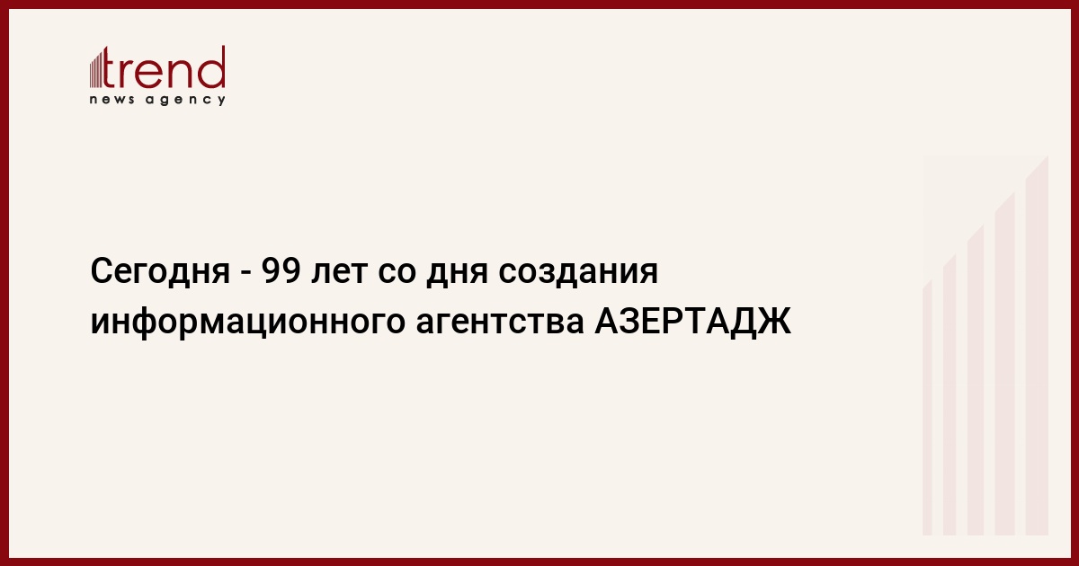 БАКУ /Trend/ - Первого марта исполняется 99 лет со дня создания Азербайджанского государственного информационного агентства АЗЕРТАДЖ.
