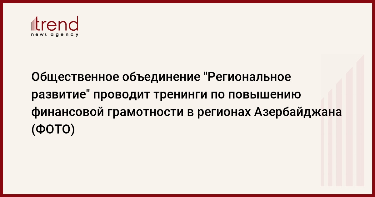 БАКУ /Trend/ - В рамках проекта "Повышение финансовой грамотности населения" Общественное объединение "Региональное развитие" Фонда Гейдара Алиева совместно со Сберегательным банком Германии дало старт тренингам в Гёйчае на тему "Сберегательные игры", сообщает в пятницу Trend со ссылкой на Фонд.