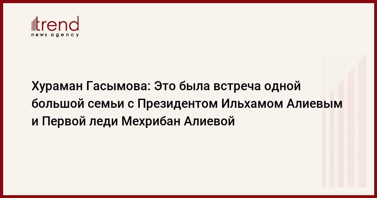 "Впечатления от встречи остались очень хорошие, она была очень теплой, и Президент Ильхам Алиев пообещал, что будет чаще проводить встречи с творческой интеллигенцией в таком формате. Первая леди Мехрибан Алиева, которая всегда оказывает большую поддержку культуре и творческим деятелям, была также очень искренней. Это была встреча одной большой семьи!", - сказала Хураман Гасымова.