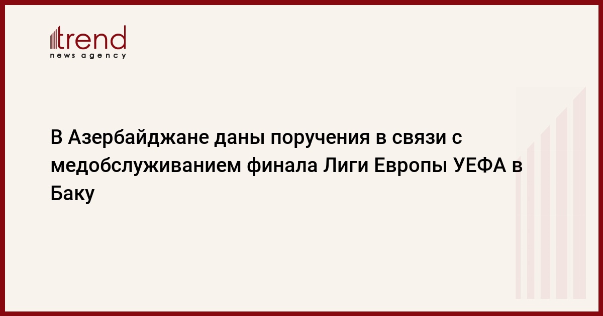 БАКУ /Trend/ - Министр здравоохранения Азербайджана Огтай Ширалиев подписал приказ «О медицинском обеспечении финальной игры Лиги Европы УЕФА по футболу», сообщает в понедельник Trend со ссылкой на министерство здравоохранения.