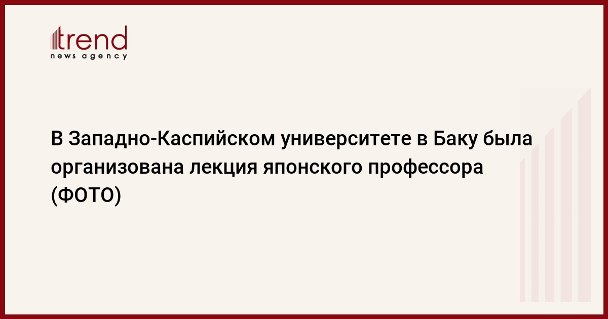 БАКУ /Trend/ – В Западно-Каспийском университете в Баку 11 марта состоялась лекция японского профессора Хосоя Юичи. Профессор факультета Международной политики японского университета Кейо выступил с лекцией на тему «Шаги к демократии в современной Японии: японская дипломатия в Восточной Азии».