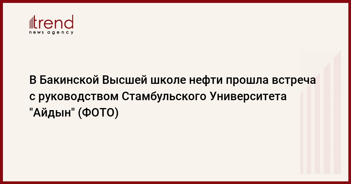 БАКУ /Trend/ - В Бакинской Высшей школе нефти (БВШН) прошла встреча с представителями руководства Стамбульского Университета «Айдын» во главе с президентом университета Мустафой Айдыном. Приветствуя гостей, ректор БВШН Эльмар Гасымов рассказал о деятельности и последних достижениях вуза, сообщает в понедельник Trend со ссылкой на вуз.