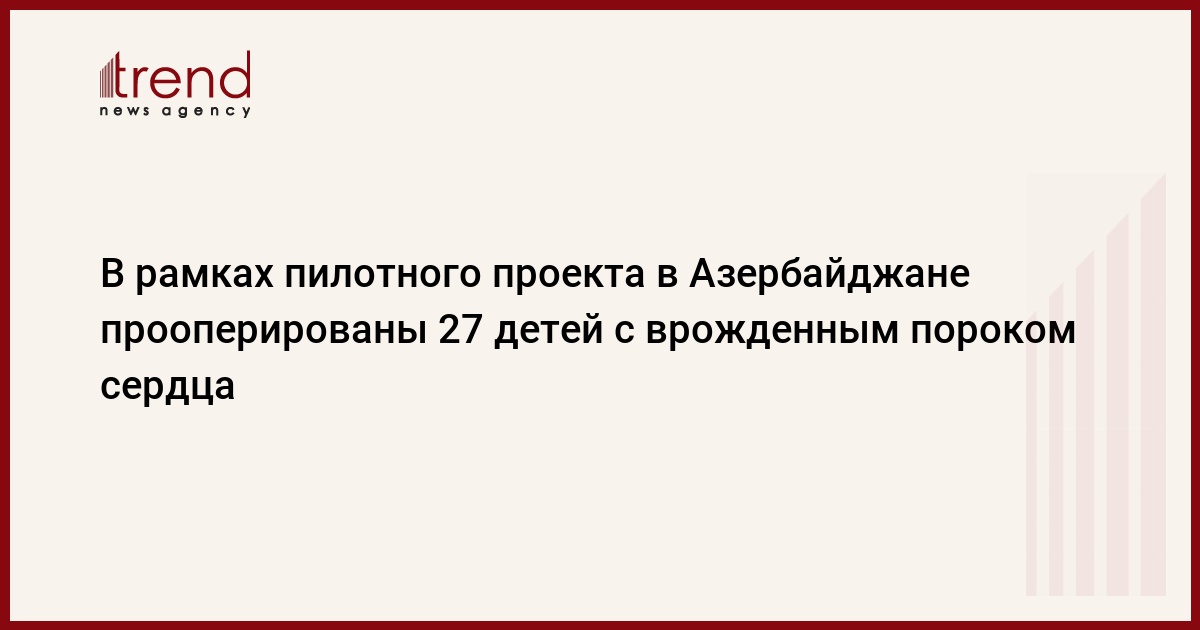 БАКУ /Trend/ - В ходе реализации пилотного проекта по внедрению в Азербайджане системы обязательного медицинского страхования были прооперированы 27 детей с врожденным пороком сердца.