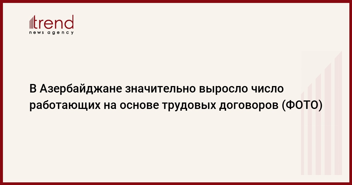 БАКУ /Trend/ - В результате успешных реформ, проведенных в Азербайджане, в течение первых трех месяцев 2019 года число работающих на основе трудовых договоров граждан, зарегистрированных в электронной информационной системе (ЭИС), увеличилось на 65 821.