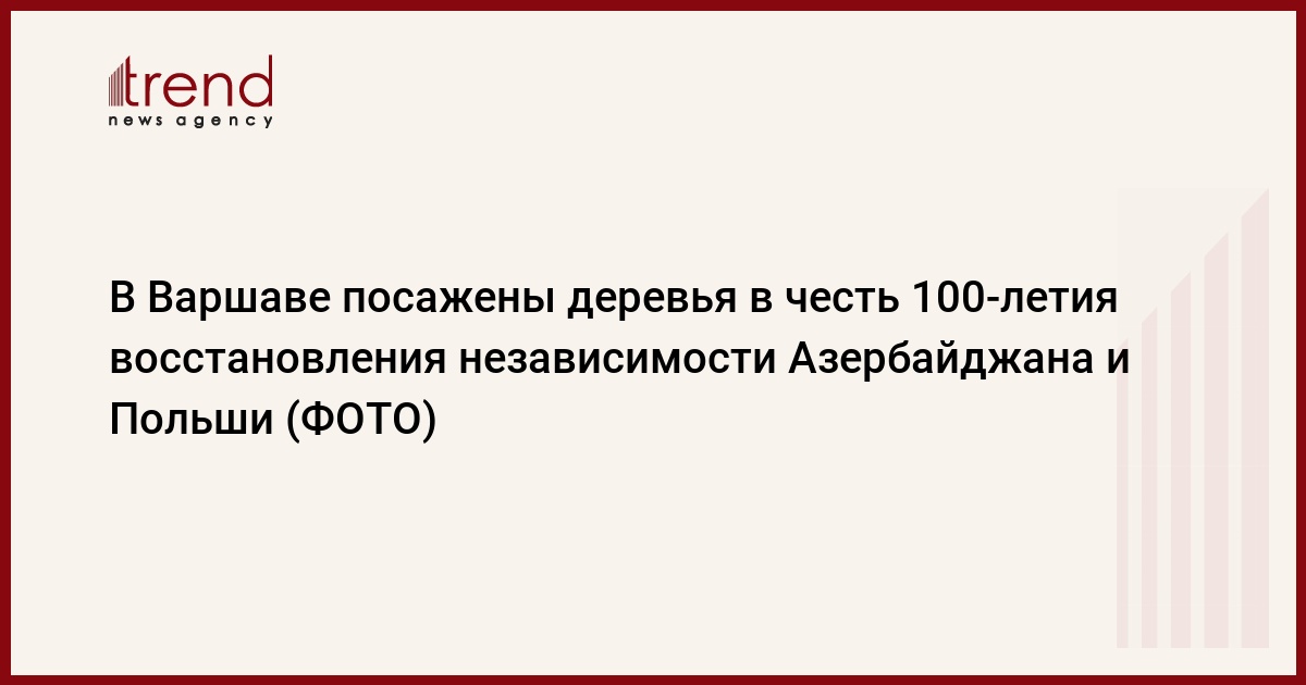 БАКУ /Trend/ - В рамках официального визита в Польшу министр иностранных дел Азербайджана Эльмар Мамедъяров принял участие в церемонии посадки деревьев в парке имени Йозефа Полински в Варшаве в честь 100-летия восстановления независимости Азербайджана и Польши, сообщает в четверг Trend со ссылкой на МИД Азербайджана.