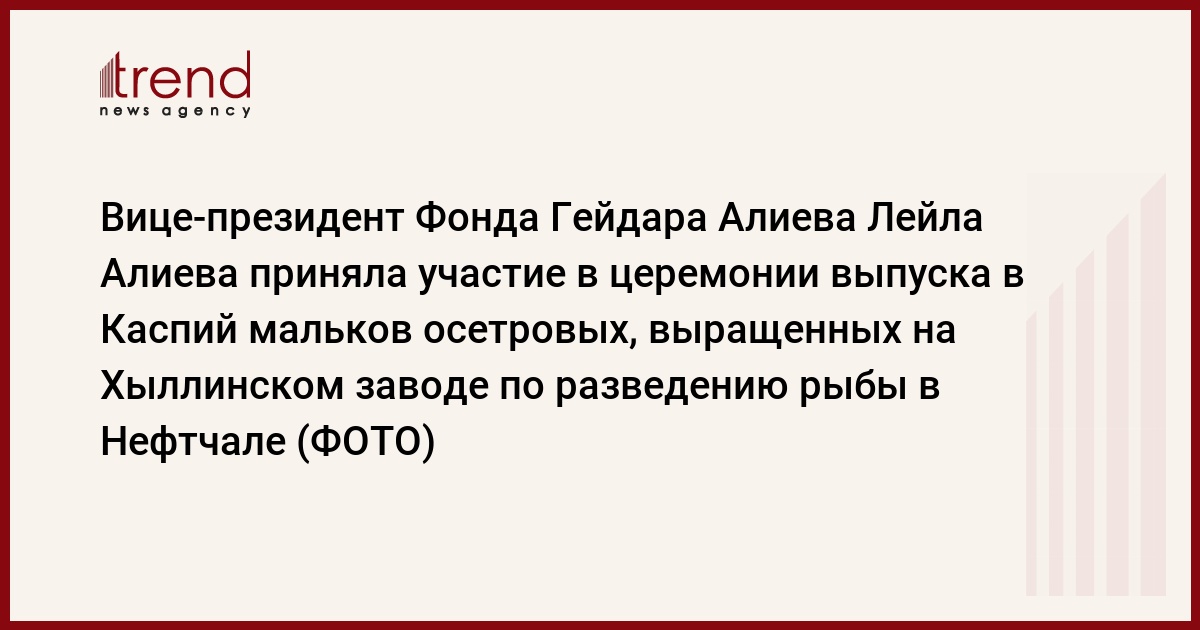 БАКУ /Trend/ - В понедельник в рамках сотрудничества Общественного объединения IDEA и Министерства экологии и природных ресурсов Азербайджанской Республики в области улучшения экологической среды Каспийского моря состоялась церемония выпуска в воду мальков осетровых пород, выращенных на Хыллинском заводе по разведению осетровых в Нефтчале.