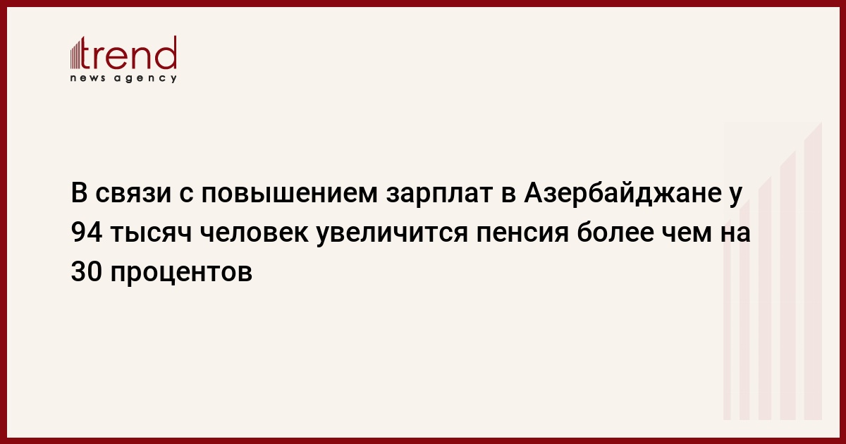 Указ Президента Ильхама Алиева о повышении зарплат в государственном секторе способствует повышению пенсий более чем на 30 процентов у 94 тысяч человек, которым, согласно законодательству, назначена пенсия на особых условиях.