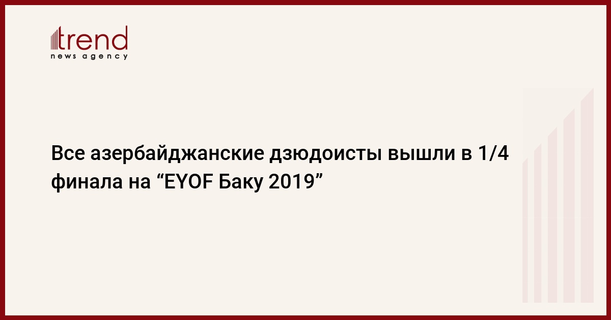 БАКУ /Trend/ - Азербайджанские дзюдоисты продолжают уверенные выступления во второй день соревнований по дзюдо, проходящих в рамках XV Европейского юношеского олимпийского фестиваля "EYOF Баку 2019", сообщает в четверг Trend.