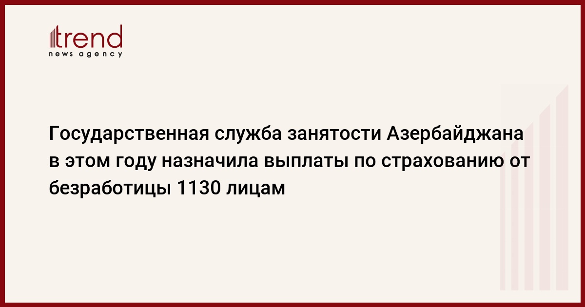 БАКУ/Trend/ - Государственная служба занятости при министерстве труда и социальной защиты населения Азербайджана за минувший период этого года назначила выплату по страхованию от безработицы 1130 лицам.