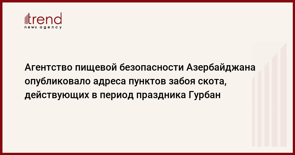 БАКУ/Trend/ - С целью соблюдения чистоты и недопущения антисанитарии, Агентство пищевой безопасности Азербайджана призывает население резать скот исключительно в современных стационарных, модульных пунктах забоя скота и, в организованных, совместно с местными органами исполнительной власти, палаточных пунктах, соответствующих ветеринарно-санитарным и гигиеническим нормам, передает в четверг Trend.