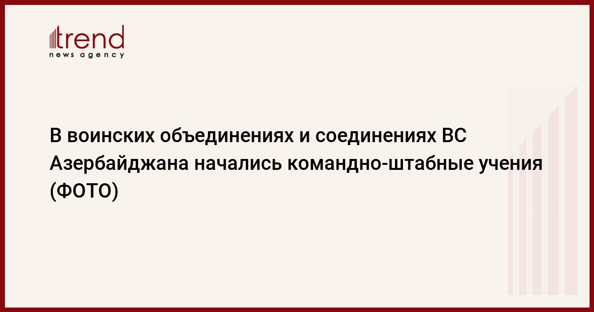 БАКУ /Trend/ - Согласно плану боевой подготовки на 2019 год, c целью организации боевого слаживания органов управления и штабов, а также уточнения и проверки расчетов по боевому применению различных элементов оперативного и боевого порядка в воинских объединениях и соединениях азербайджанской армии начались командно-штабные учения.