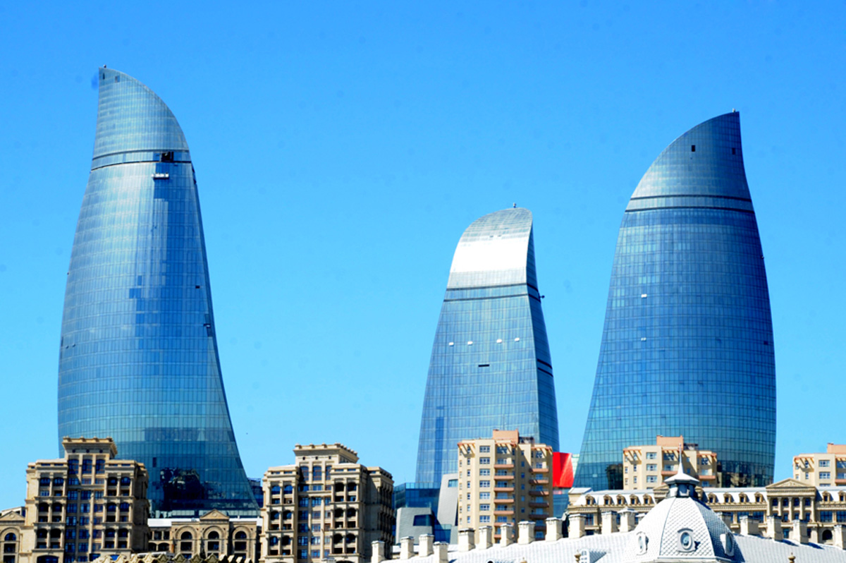 Как пишет автор, одним из самых удивительных элементов современного силуэта города являются Flame Towers - трио высотных сооружений, которые напоминают языки огня, пылающие высоко над Каспийским морем.