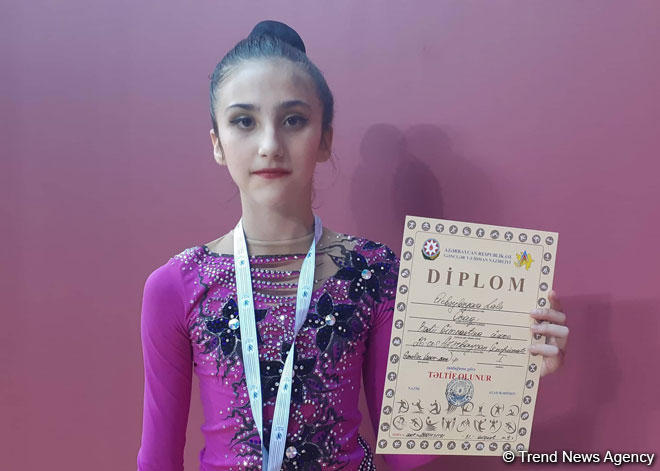 БАКУ /Trend/ - Юная азербайджанская спортсменка Лала Гебейбейова, занявшая первое место на 26-м Чемпионате Азербайджана и Баку по художественной гимнастике в упражнении со скакалкой среди гимнасток в возрастной категории "юниоры" очень рада своей победе. Об этом гимнастка сказала Trend в субботу.