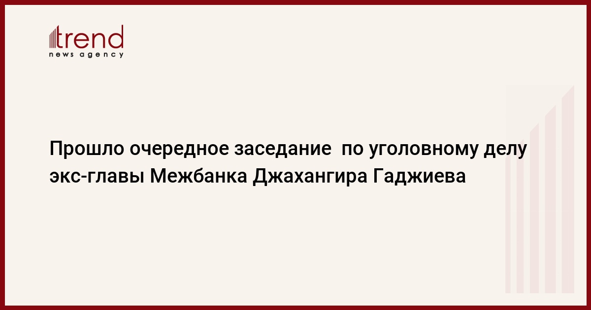 БАКУ /Trend/ - В Бакинском суде по тяжким преступлениям прошло очередное заседание по уголовному делу экс-председателя правления Международного банка Джахангира Гаджиева, его родственника Исмаила Идаятзаде, экс-депутата Дуньямина Халилова и других лиц, обвиняемых в присвоении денежных средств, сообщает в понедельник Trend.