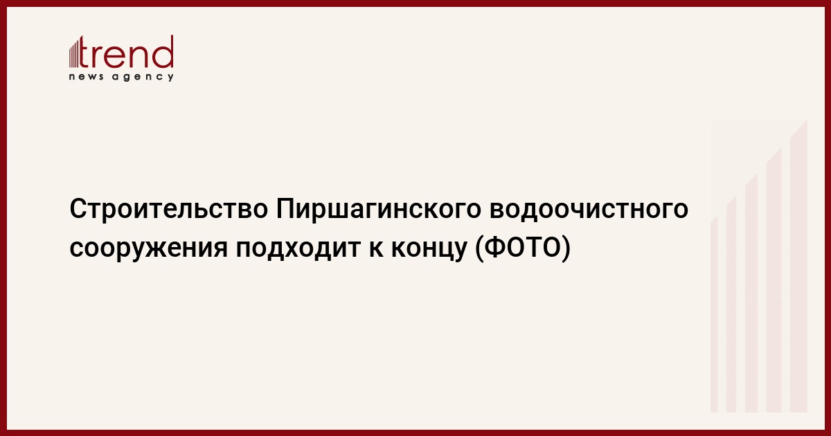 БАКУ /Trend/ - Более 90% работ строительства первого современного Пиршагинского водоочистного сооружения в Азербайджане, совместно финансируемого правительством Азербайджана и Экспортно-импортным банком Кореи выполнены, сообщает в четверг Trend со ссылкой на Азербайджанское Каспийское морское пароходство (ASCO).