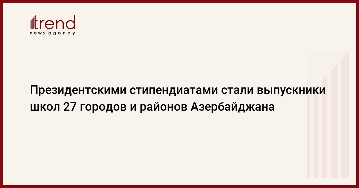 БАКУ /Trend/ - Поступившие в вузы Азербайджана в 2019-2020 учебном году абитуриенты, которым предоставлена Президентская стипендия, представляют 27 городов и районов страны, сообщает во вторник Trend со ссылкой на Государственный экзаменационный центр (ГЭЦ).