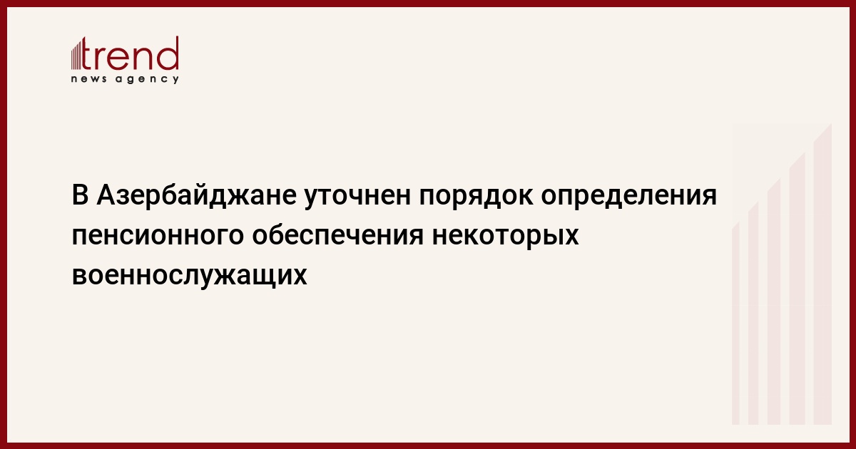 БАКУ/Trend/ - В Азербайджане уточнен порядок определения пенсионного обеспечения некоторых военнослужащих.