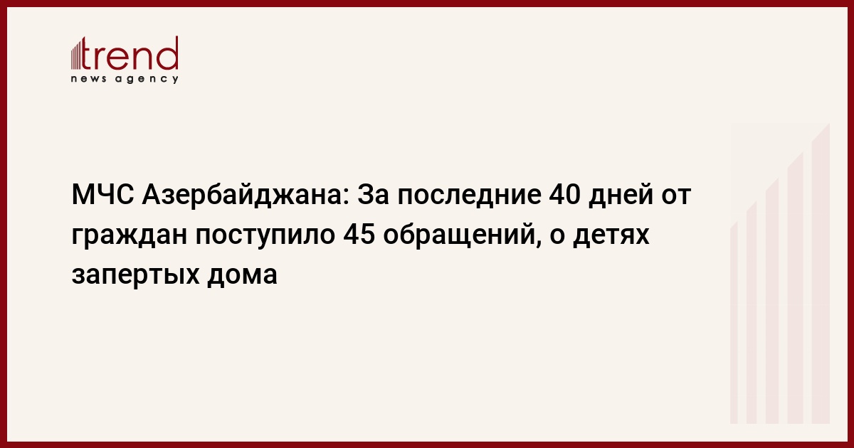 Она добавила, что увеличилось также и число обращений в МЧС, связанных с тем, что дети остаются запертыми дома. «За последние 40 дней от граждан поступило 45 таких обращений», - сказала она.