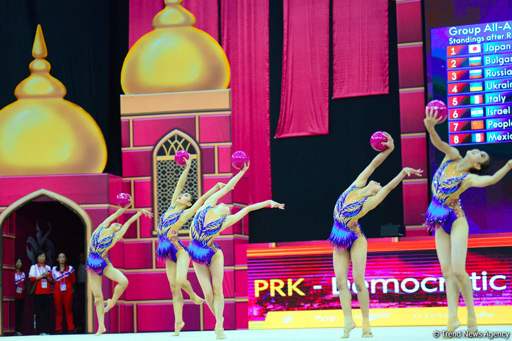 БАКУ /Trend/ - В Национальной арене гимнастики в Баку продолжаются соревнования команд в групповых упражнениях в рамках 37-го Чемпионата мира по художественной гимнастике, сообщает в субботу Trend.