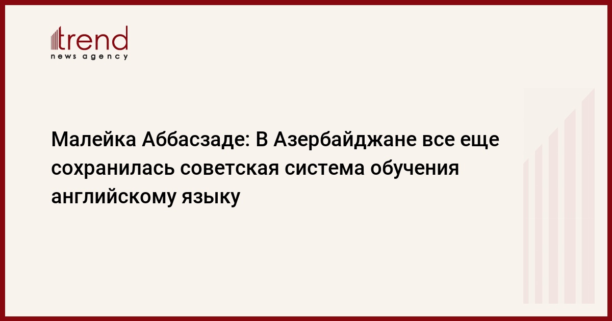 В 90-х годах учителя, которые лучше всех знали английский язык были приняты на работу в нефтяных компаниях и отдалились от системы образования. И теперь хорошо знающая иностранный язык молодежь в основном не работают в школах, а находит работу в других местах. Эта ситуация наблюдается не только в Азербайджане. Для знающих английский язык людей открыт весь европейский рынок труда. Для нас важно, чтобы обучение английскому языку обрело массовый характер. Если азербайджанская молодежь хочет интегрироваться в мировую систему образования, то должна на высоком уровне знать какой-нибудь иностранный язык. Каждый гражданин должен хорошо знать хотя бы один современный европейский язык. Это наша цель для будущего. Если какой-то молодой человек сможет сделать это, ему станет проще найти работу. Нам не нужно, чтобы после сдачи экзаменов ученики начали говорить на архаичном языке», - отметила Малейка Аббасзаде.