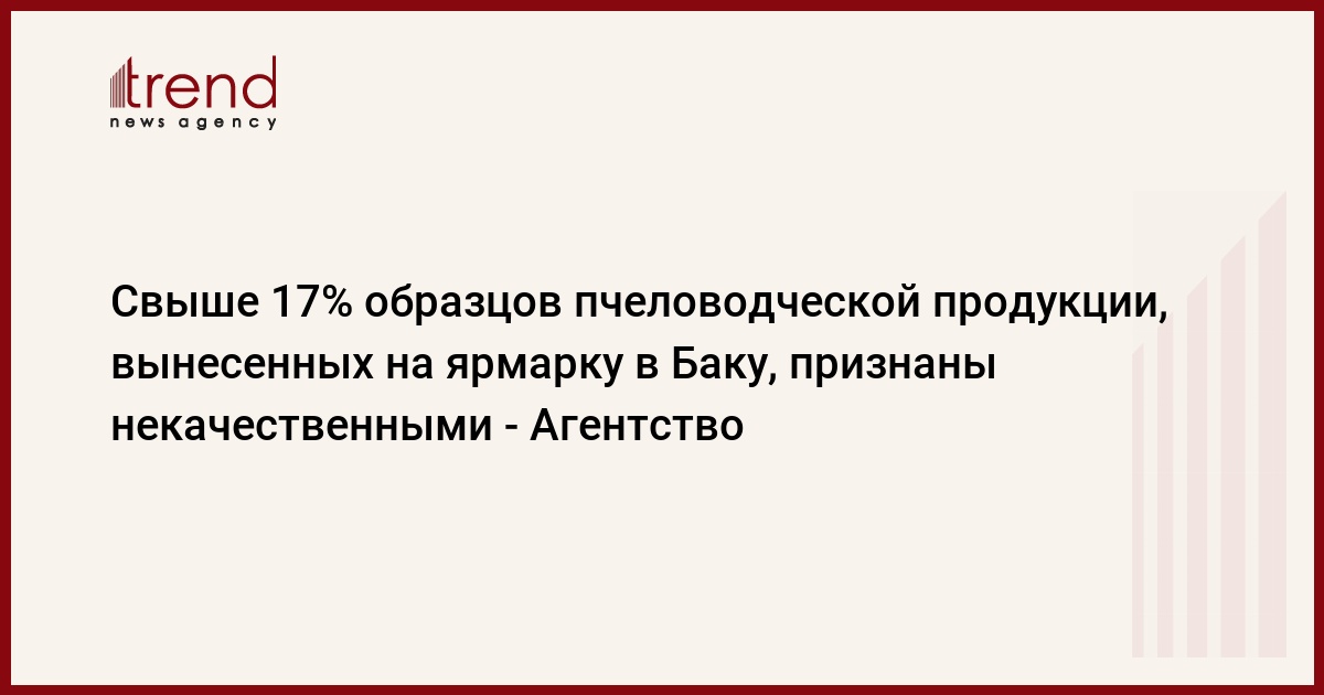 БАКУ /Trend/ - Агентство пищевой безопасности провело лабораторную проверку образцов мёда, которые будут вынесены на продажу на 20-й республиканской ярмарке-выставке пчеловодческой продукции в Баку, сообщает в пятницу Trend со ссылкой на Агентство.