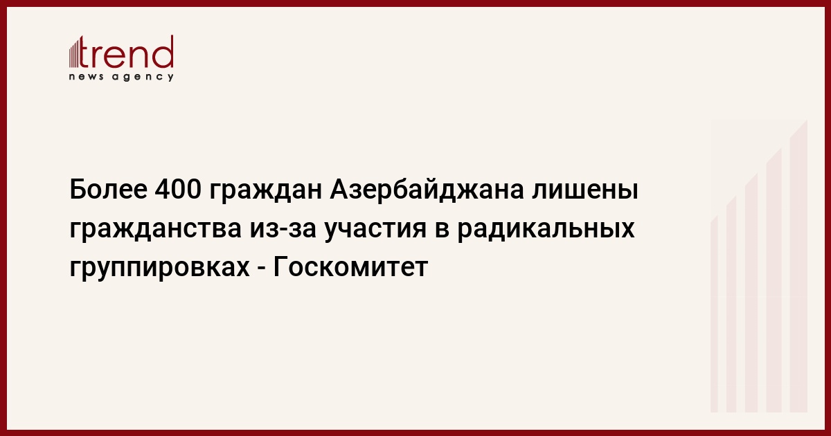 БАКУ/Trend/ - Более 400 граждан Азербайджана, которые присоединились к радикальным группировкам с 2011 года, лишены гражданства.