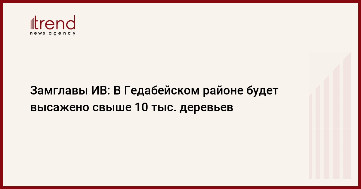 БАКУ /Trend/ - В рамках инициативы Первого вице-президента Мехрибан Алиевой по посадке в один день 650 тысяч деревьев, приуроченной к юбилею гениального поэта Имадеддина Насими, в Гедабейе будет высажено свыше пяти тысяч деревьев.