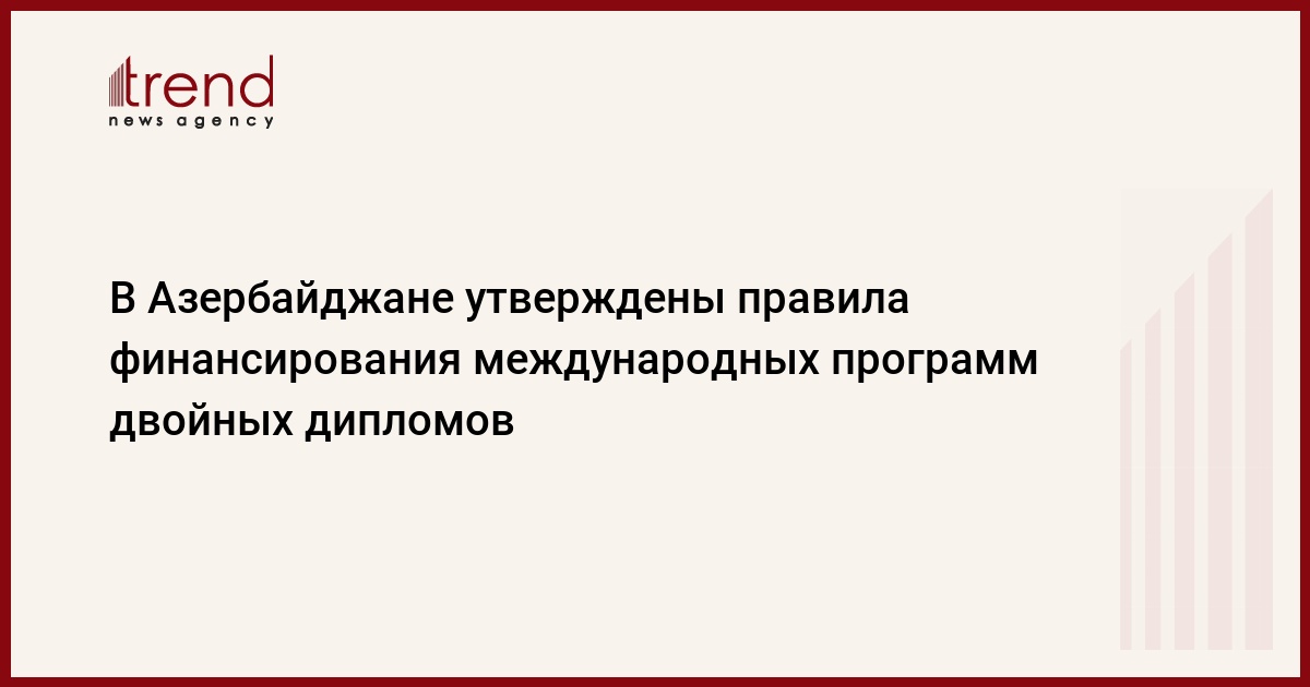БАКУ/Trend/ - В рамках "Государственной программы по повышению международной конкурентоспособности системы высшего образования в Азербайджане на 2019-2023 года" утверждены правила финансирования реализации программ двойных дипломов.