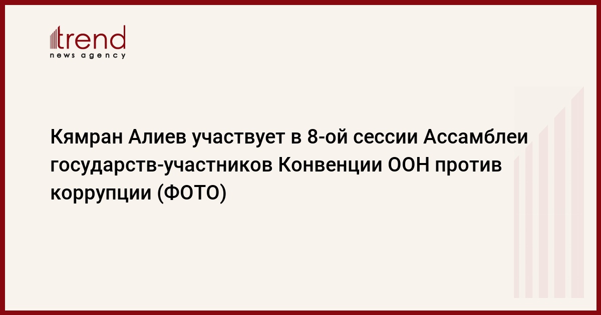 БАКУ /Trend/ - В городе Абу-Даби ОАЭ началась 8-я сессия Ассамблеи государств-участников Конвенции ООН против коррупции.