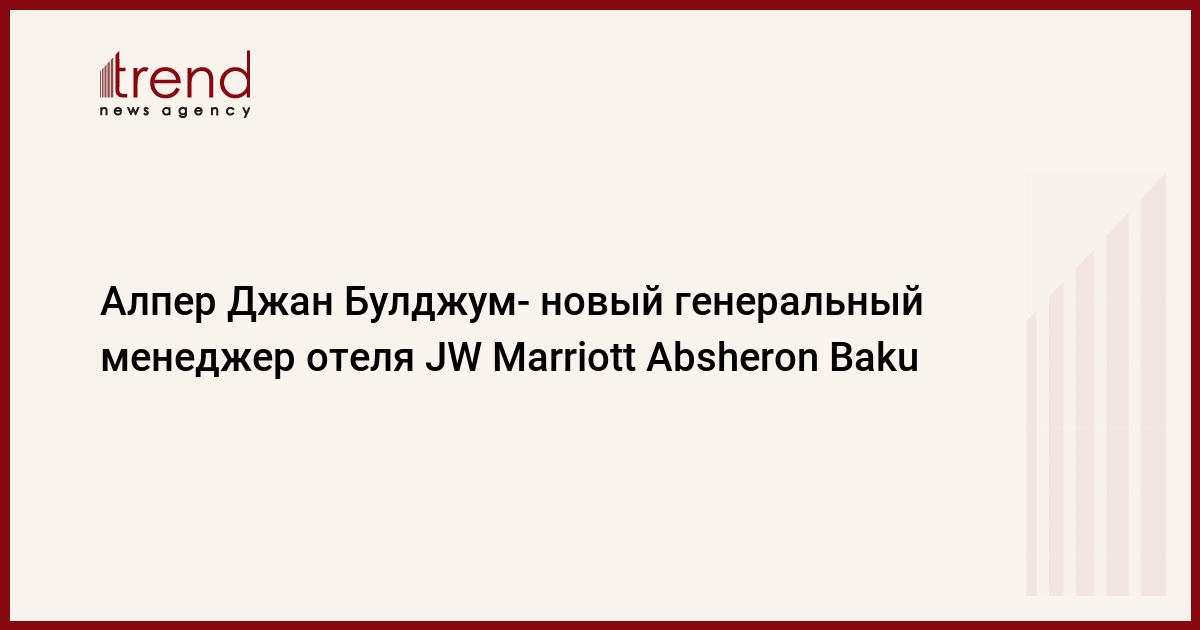 Алпер Джан Булджум (Alper Can Bulcum) приступил к обязанностям генерального директора JW Marriott Absheron Baku, 23 декабря 2019 года.