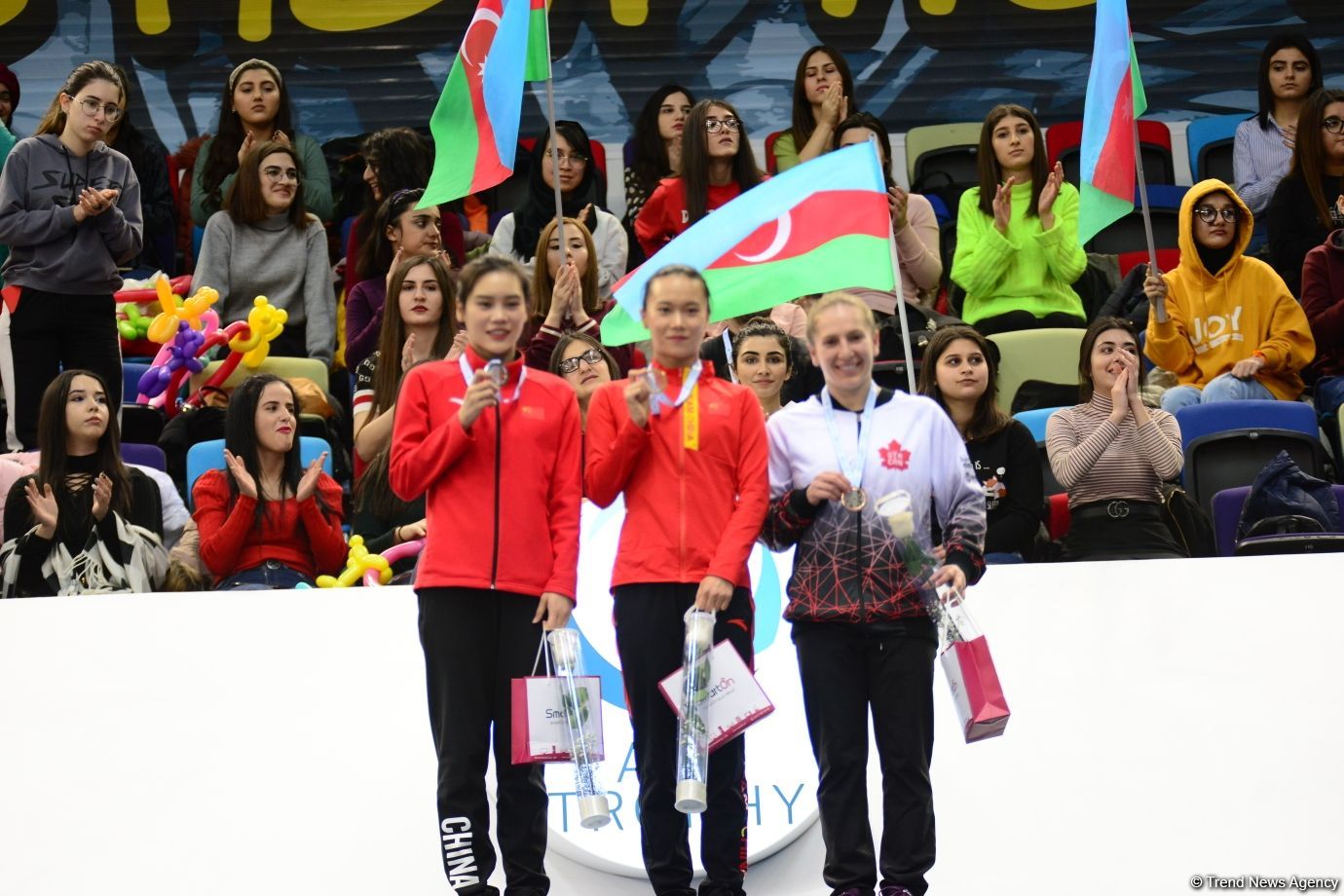 БАКУ /Trend/ - В воскресенье в Национальной арене гимнастики состоялась церемония награждения победителей и призеров в индивидуальной программе по прыжкам на батуте в рамках Кубка мира по прыжкам на батуте и акробатической дорожке (тамблинг).
