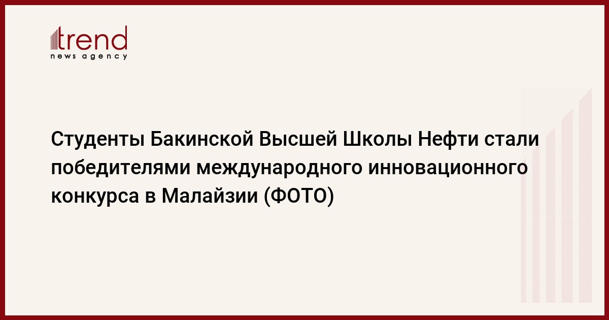 Студенты Бакинской Высшей Школы Нефти (БВШН) победили в 48-часовом международном инновационном конкурсе Invent For the Planet 2020 (Изобретай для планеты), проведённом в Малайзии.