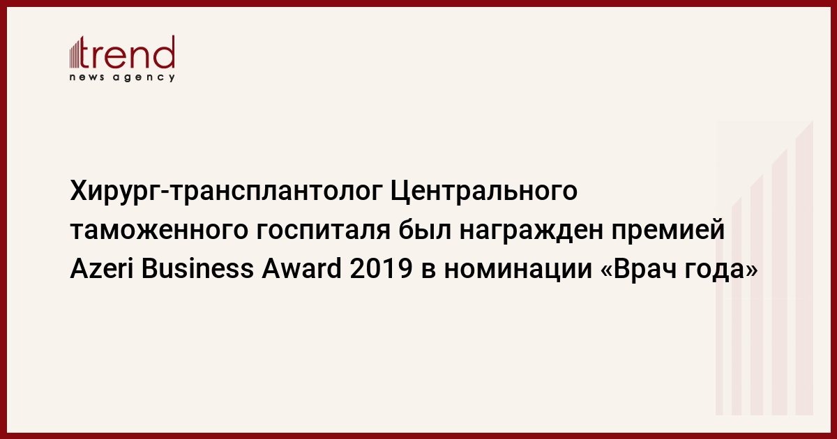 29 февраля в Баку в Buta Palace была проведена очередная торжественная церемония вручения национальной премии в области бизнеса Azeri Business Award по итогам 2019 года. В номинации «Врач года» за высокие достижения в области трансплантологии премии был удостоен доктор Мирджалал Кязыми.