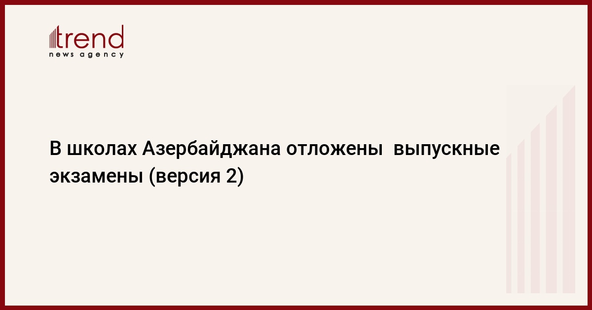 БАКУ /Trend/ - Отложены запланированные на 9 марта выпускные экзамены в средних общеобразовательных школах Гянджи, Лянкярана, Шеки, Сумгайыта и 23 районов республики, сообщает во вторник Trend со ссылкой на Государственный экзаменационный центр (ГЭЦ).