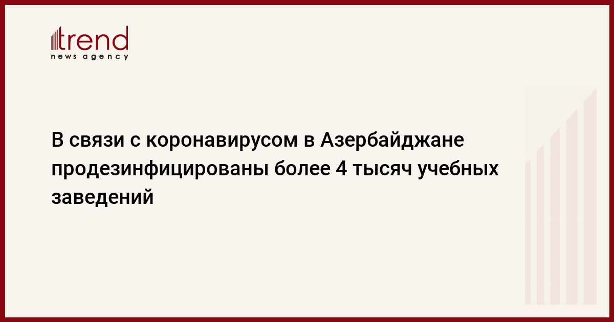 БАКУ/Trend/ - В рамках профилактических мер для пресечения распространения коронавируса COVID-19 продезинфицированы 4 250 учебных заведений, входящих в систему министерства образования Азербайджана.