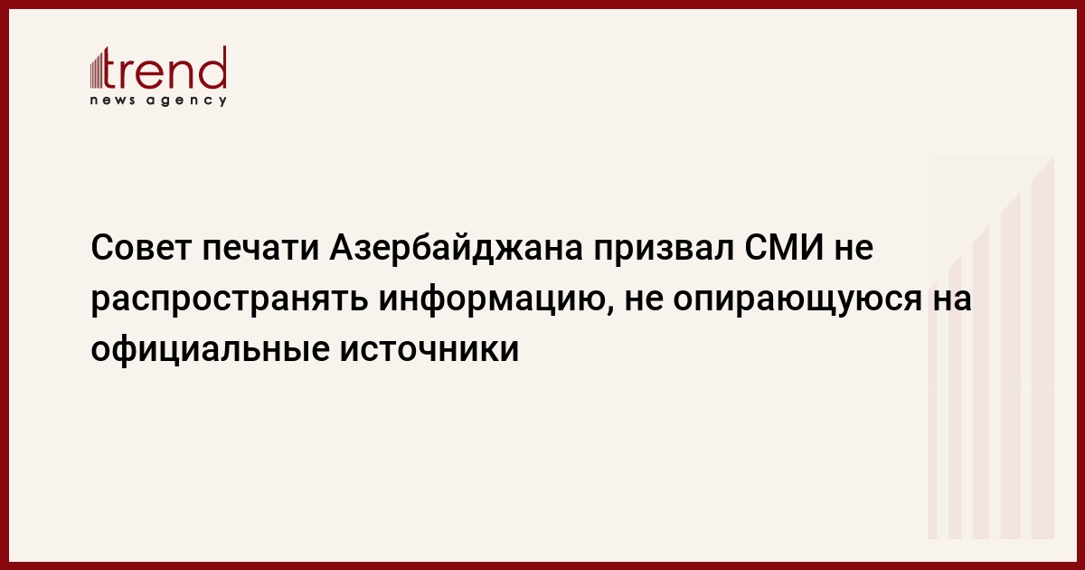 БАКУ /Trend/ - Совет печати Азербайджана призвал СМИ не распространять информацию, не опирающуюся на официальные источники.