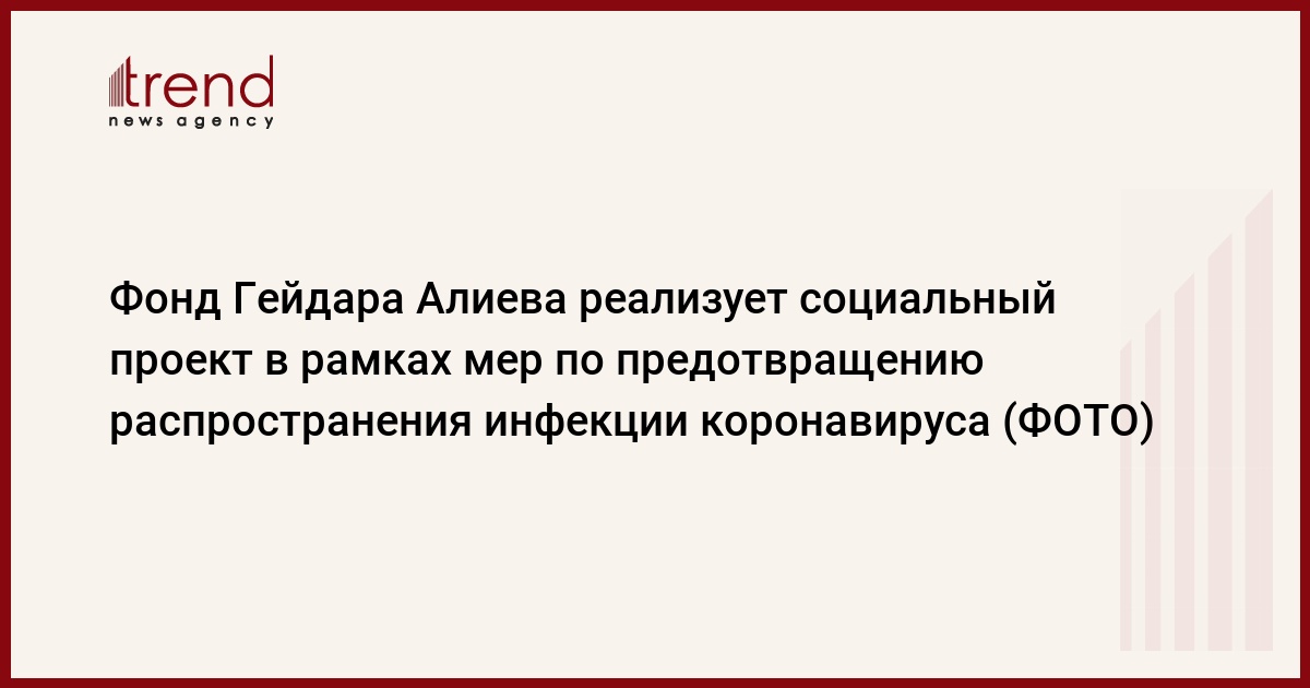 БАКУ /Trend/ - Фонд Гейдара Алиева реализует социальный проект в рамках мер по предотвращению распространения нового коронавируса COVID-19.