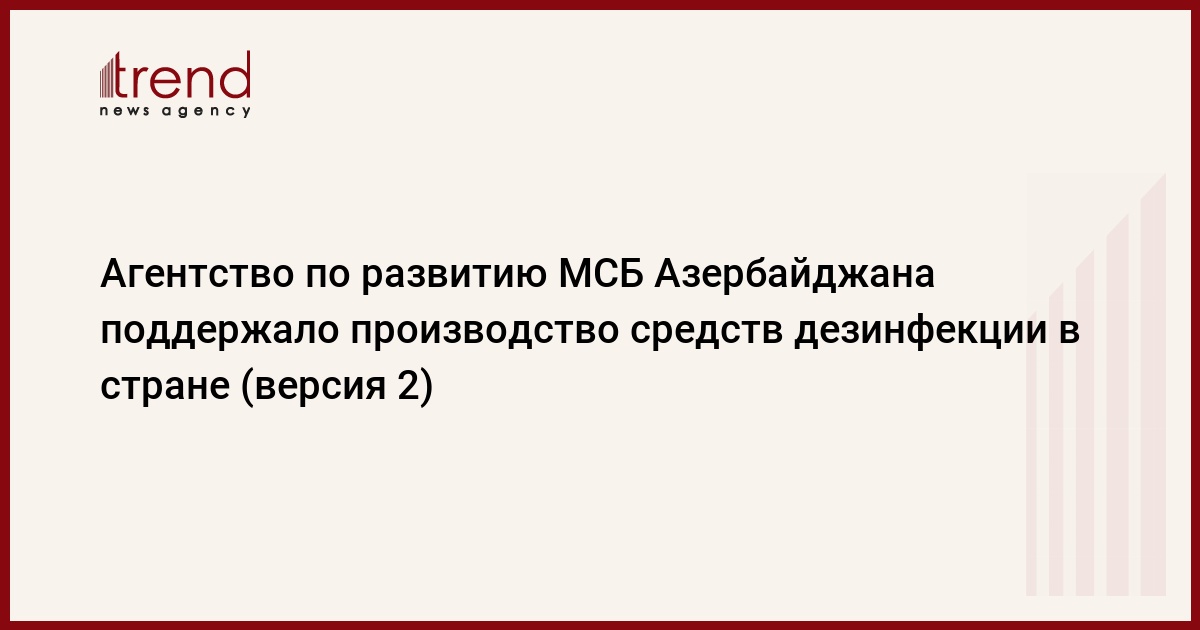 БАКУ/Trend/ - Агентство по развитию малого и среднего бизнеса (МСБ) Азербайджана поддержало производство дезинфицирующего средства в стране, сообщает в воскресенье Trend со ссылкой на Агентство.