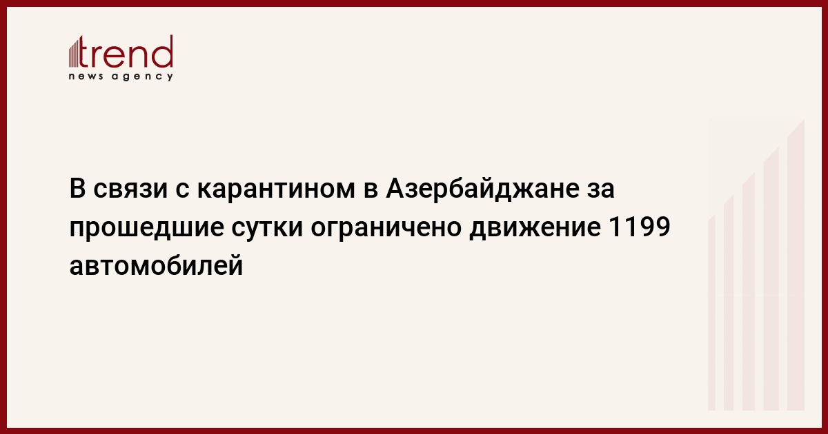 БАКУ /Trend/ - За прошедшие сутки в связи с особым режимом карантина в Азербайджане ограничено движение 1199 транспортных средств. В отношении 2 189 водителей и пассажиров, которые без крайней необходимости покинули дома, и попытались проехать на транспортных средствах через полицейские посты, были применены административные санкции в виде штрафа.
