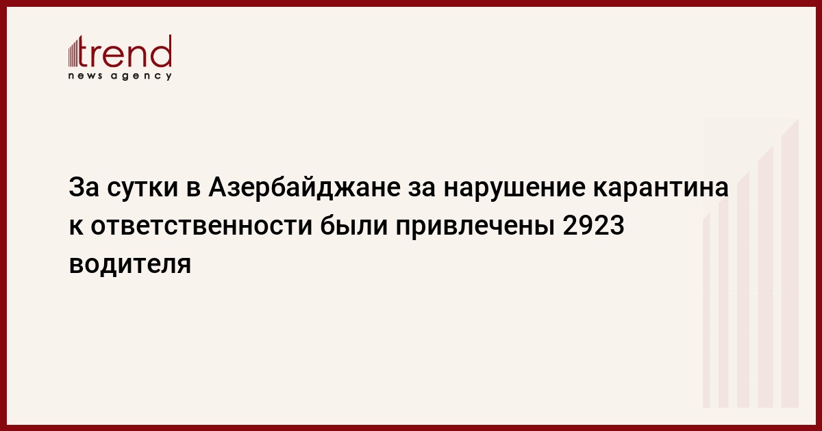 БАКУ /Trend/ - За нарушение карантинного режима в период с 00:00 часов 15 апреля до 00:00 часов 16 апреля в Азербайджане к административной ответственности по ст. 211 Кодекса об административных проступках были привлечены 2923 участника дорожного движения, сообщает в четверг Trend со ссылкой на Главное управление Государственной дорожной полиции.