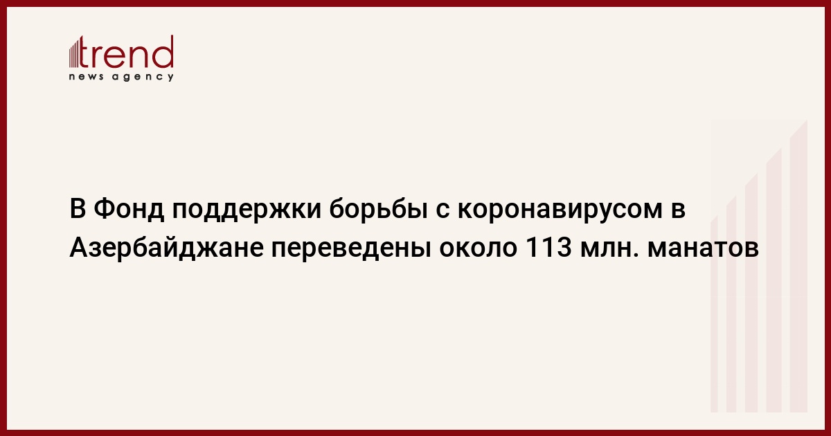 БАКУ/Trend/ - Обнародована сумма пожертвований, переведенных в Фонд поддержки борьбы с короонавирусом в Азербайджане, сообщает в среду Trend.