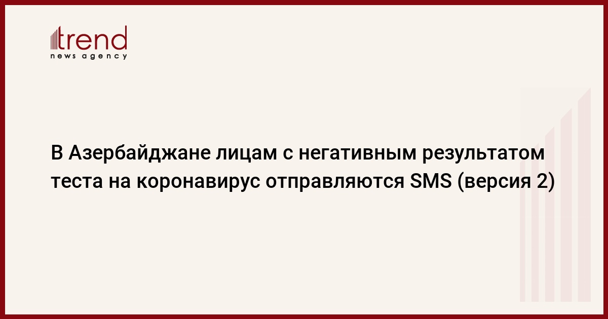 БАКУ/Trend/ - В Азербайджане лицам с негативным результатом теста на коронавирус отправляются оповещения посредством SMS, сообщает в среду Trend со ссылкой на Госагентство по обязательному медицинскому страхованию (ОМС).