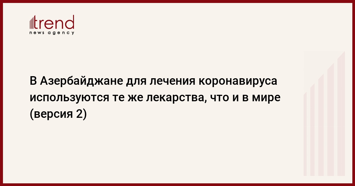 БАКУ/Trend/ - В Азербайджане для лечения коронавируса используют те же лекарства, что и в мире
